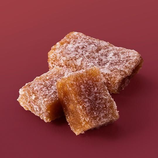 香ばしいマカダミアナッツがアクセントの、もちもち食感の柚餅子。